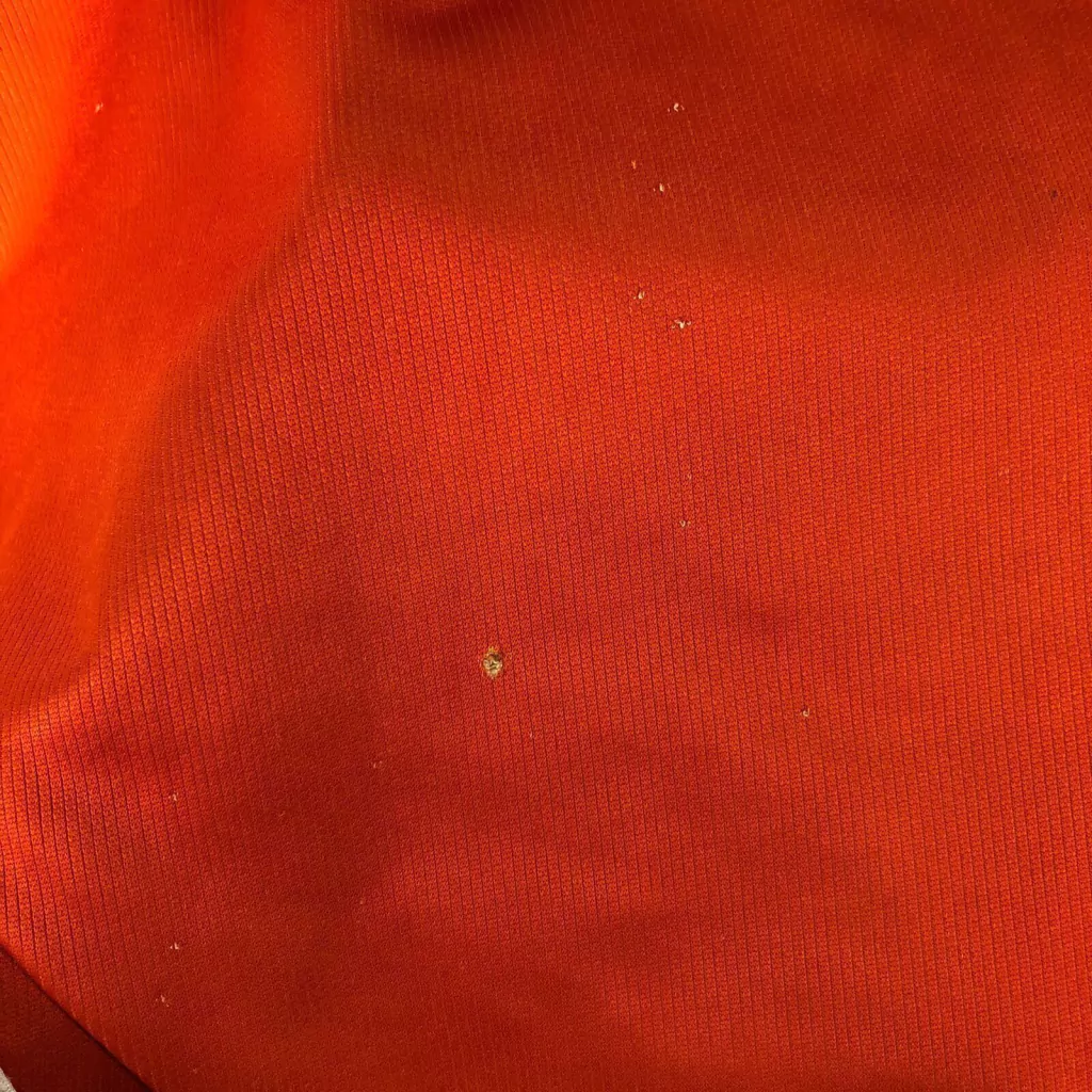OBS: Camisa possui um pequeno furo nas costas, fios puxados, bolinhas e um desgaste no fornecedor frontal.